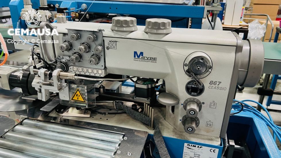Máquina semi automática para encuadernación textil tipo alfombra de coche con cinta