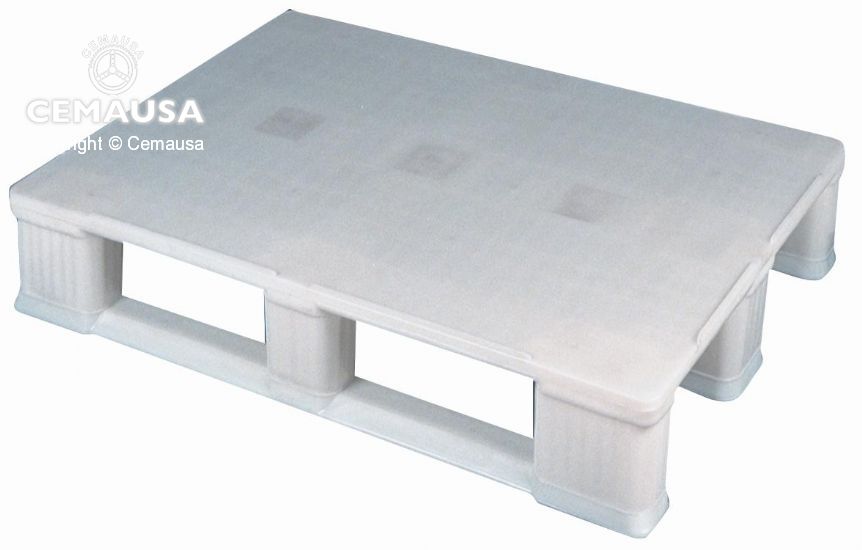 Palet de plástico nomra europea de 3 patines; apto alimentacion.
