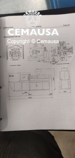 Inyectora termoplástico 210 ton y capacidad de inyección de 595 cm3.