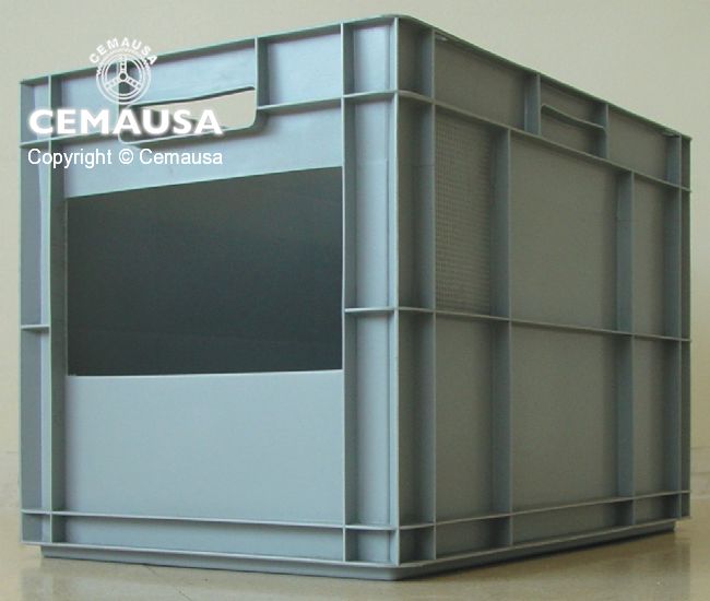 Caja plástico apilable 400x600 m/m con ventana. NORMA EUROPEA.