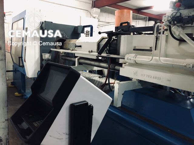 Inyectora termoplástico 350 ton con capacidad de inyección de 954 cm3,con acumuladores de inyección. EUROMAP 12.