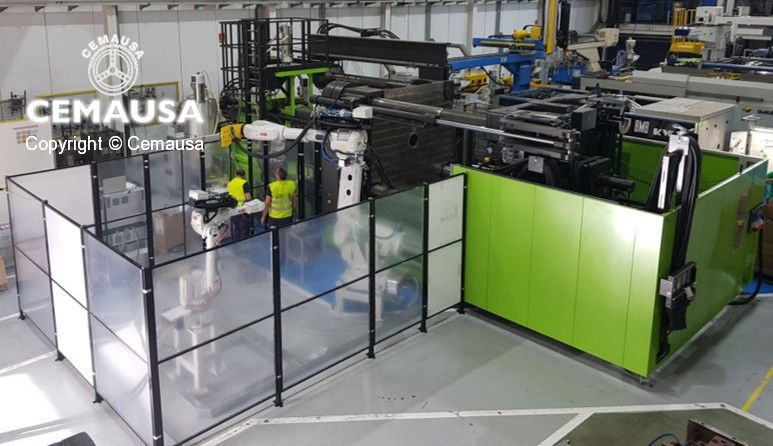 Inyectora termoplástico 1700 ton. con robot 6 ejes ABB.